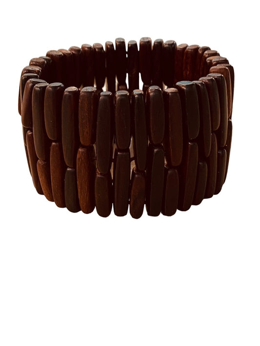 Brown Beaded Oblong Cuff Stretch Bracelet 1.5" Thick Boho Look