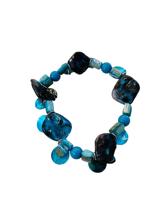 Teal Black Beaded Stretch Bracelet Glass Beads Dangle Shells