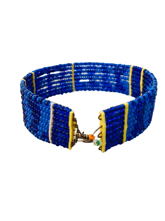Beaded Wire Cuff Bangle Bracelet Hook Closure Seed Beads 7.75"