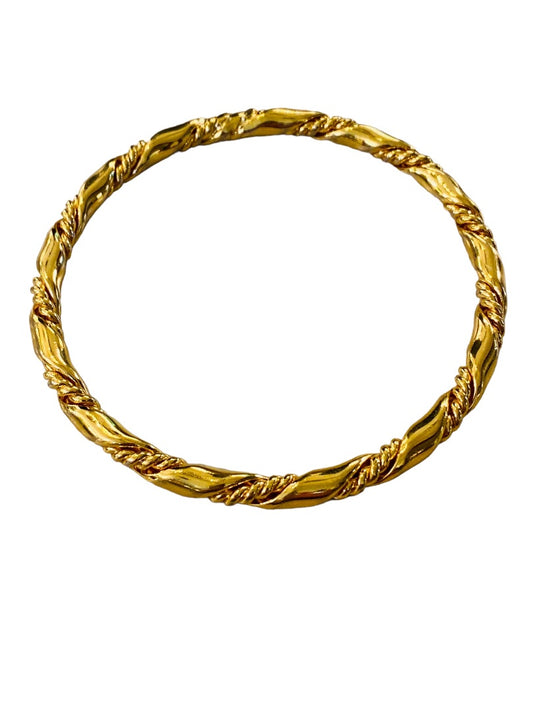 Goldtone Textured Bangle Bracelet Twist Design 2.6" Inside Diameter