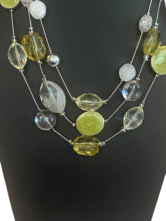 Silvertone Green Clear Beaded Layered Look Triple Strand Necklace 18-21" New York and Co