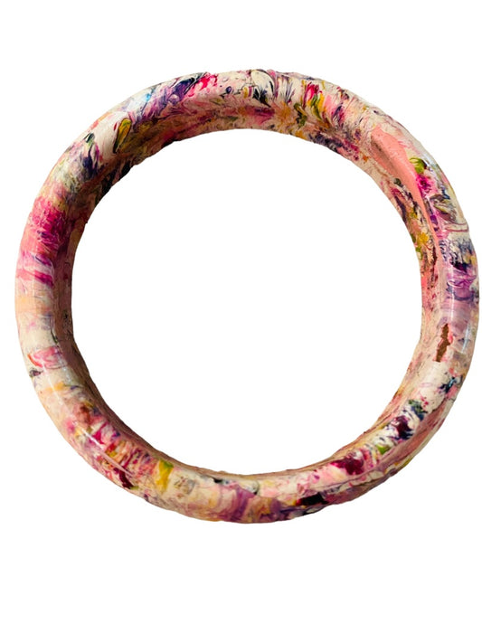 Small Painted Wooden Bangle Bracelet Swirl Multicolor 2.1" Inside Diameter