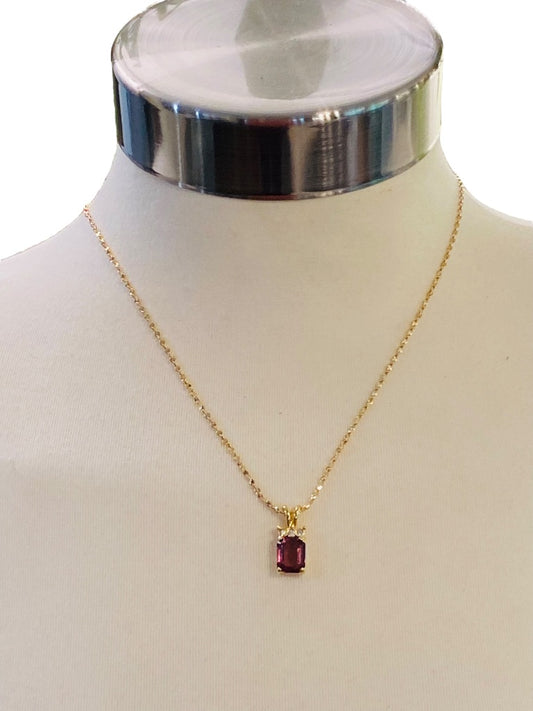 Goldtone Purple Glass Pendant 18" Necklace Clip Closure .75" Drop