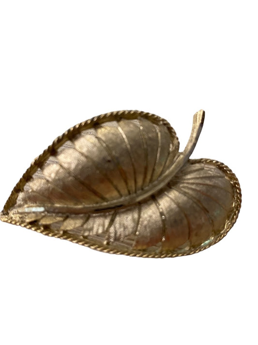 Signed BSK Goldtone Brooch Brushed Leaf Textured 2.1" Pin