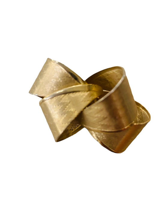 Goldtone Bow Textured Chevron Texture Brooch Pin Dimensional 1.8"