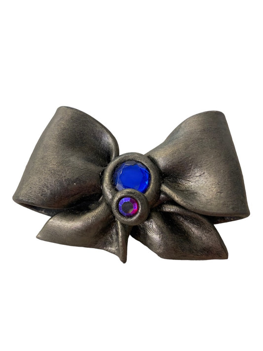Silver Pewter Polymer Brooch Blue Pink Acrylic Gem 3" x 2"