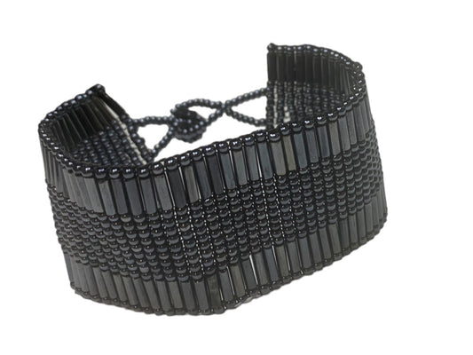 Pewter Color Bugle and Seed Bead Wrap Bracelet Toggle Knot Closure 7.25"