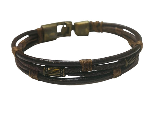 Large 8.25" Leather and Brass Multistrand Bracelet Boho Style
