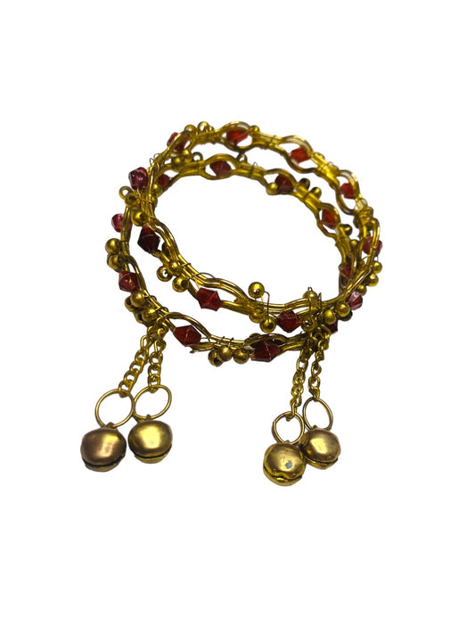 Set of 2 Wire Wrap Bangle Bracelet Goldtone Child Size 2" Inside Diameter Bells