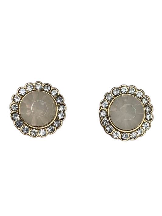 Blush Pink Stone Cluster Crystal Earrings Goldtone Trim Post Pierced .5" Diameter