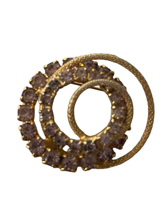 Pink Rhinestone Goldtone Vintage Brooch Pin Circles 1.4" Diameter