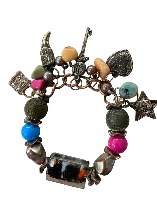 Stretch Large Wrist Bracelet Charm Chunky Heart Key Lock Star Beads