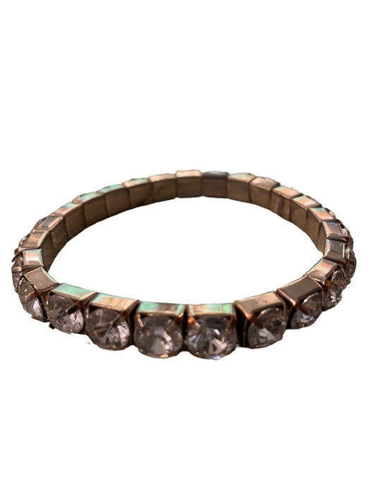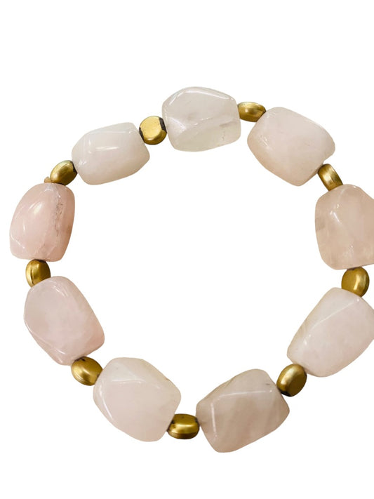 Beaded Stone and Goldtone Spacer Stretch Bracelet Blush Pink 2.5" Inside Diameter