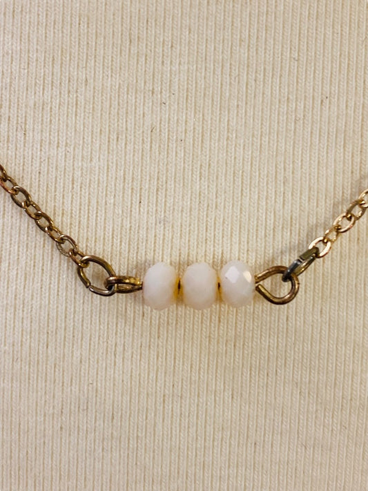 Delicate Goldtone Necklace Blush Pink Faceted Triple Beads Adjustable 15-18" Lobster Clasp