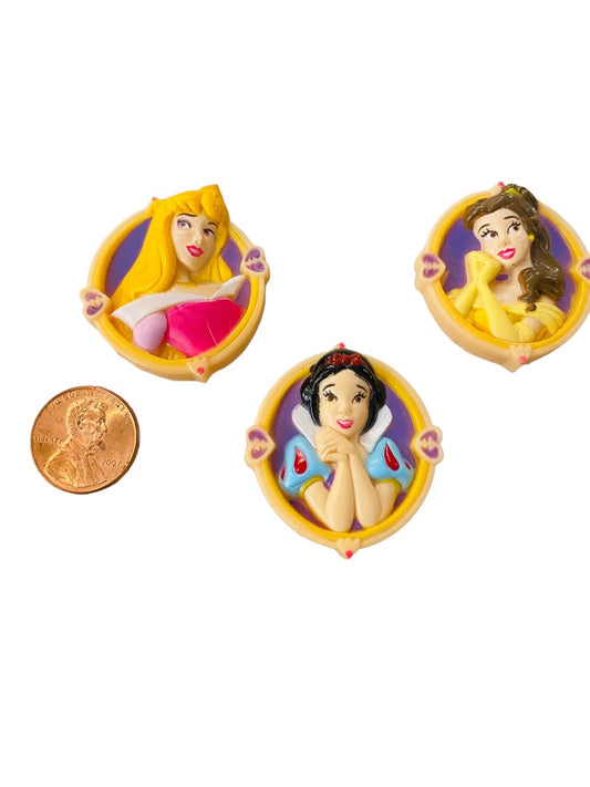 Set of 3 Disney Clip On Button Princess Snow White Belle Aurora 1.5" Diameter Slide On