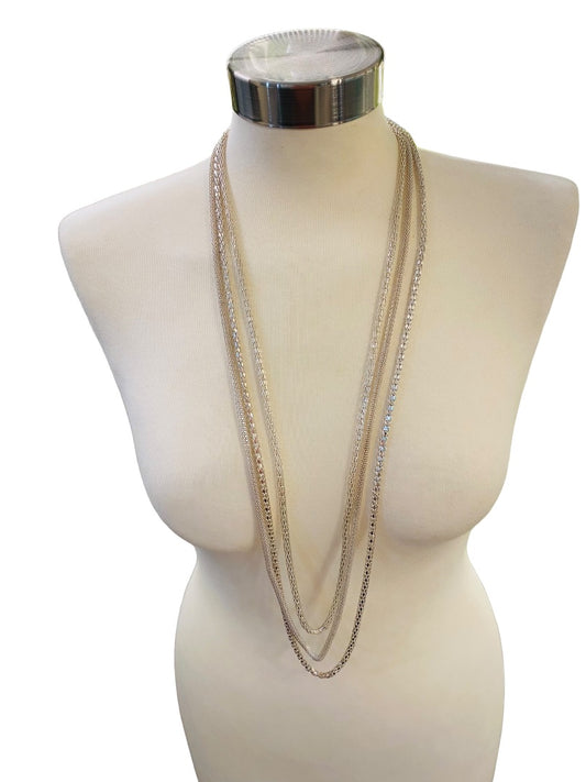 Triple Strand Draped 36" Necklace Silvertone Lightweight Sparkly