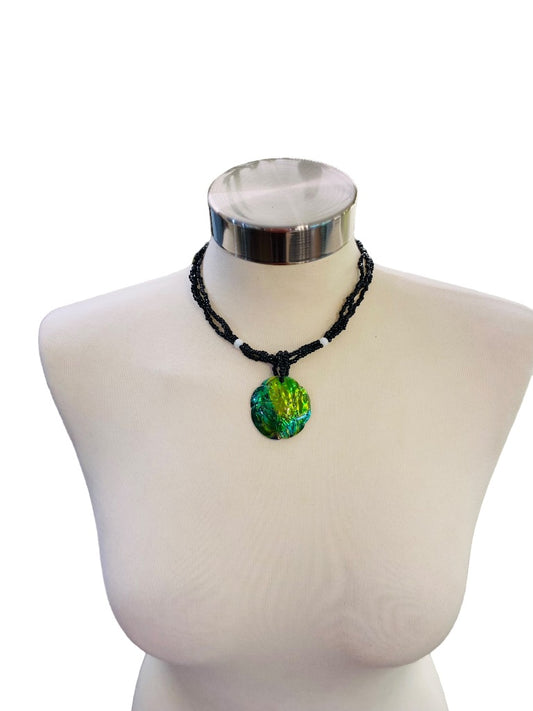 Seed Bead 16" Necklace Painted Green Shell Button Toggle Closure Beachy