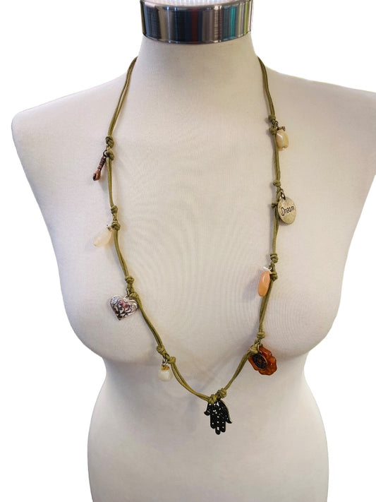 Charm Necklace Boho Eclectic Style Tied Knots Lobster Clasp 34"l Hamso Dreeam Stones