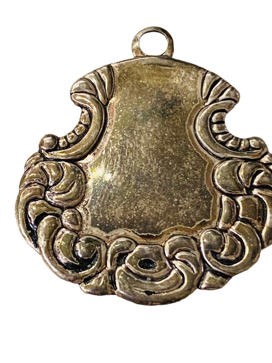 Vintage Silverplate Necklace Pendant Ornate 1.5" Lightweight