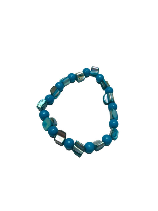 Teal Beaded Shell Stretch Bracelet Elastic 2.5" Diameter Unstretched