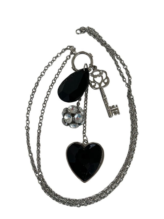 Silvertone Charm Necklace Black Charms Key Heart 28" Lobster Clasp