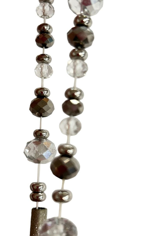 Silvertone Faceted Bead Sparkly Stretch Bracelet Sparkle