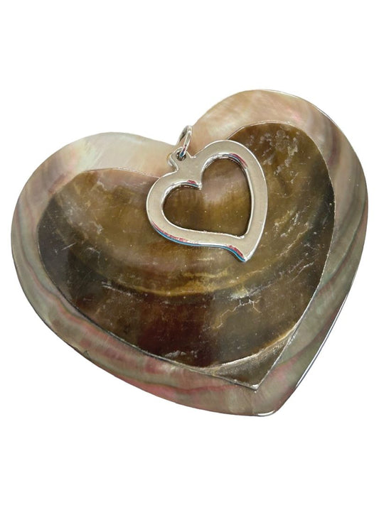 Heart Shaped Shell Silvertone Statement Pendant Brown 2.5"