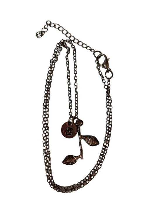 Copper Color Chain Necklace Leaves Stem Pendant Initial "S" 18-20"