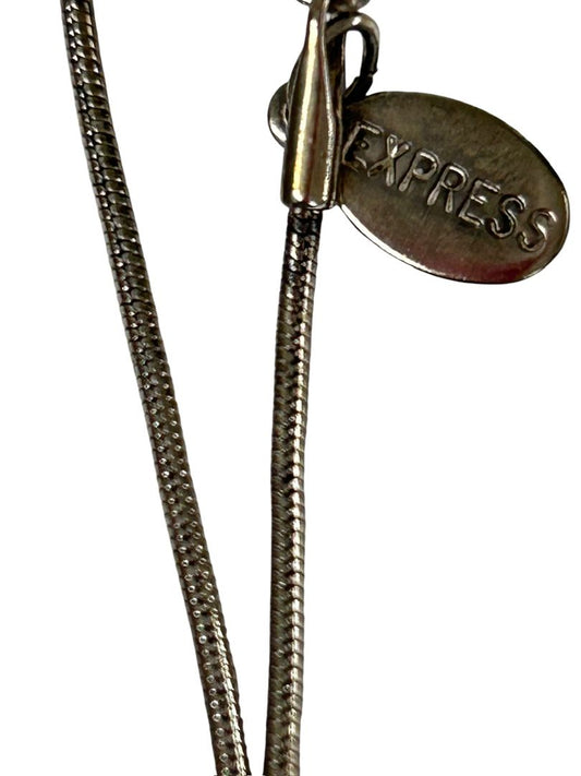 Express Silvertone Necklace Snake Chain with Clear Faceted Pendant 18-20"