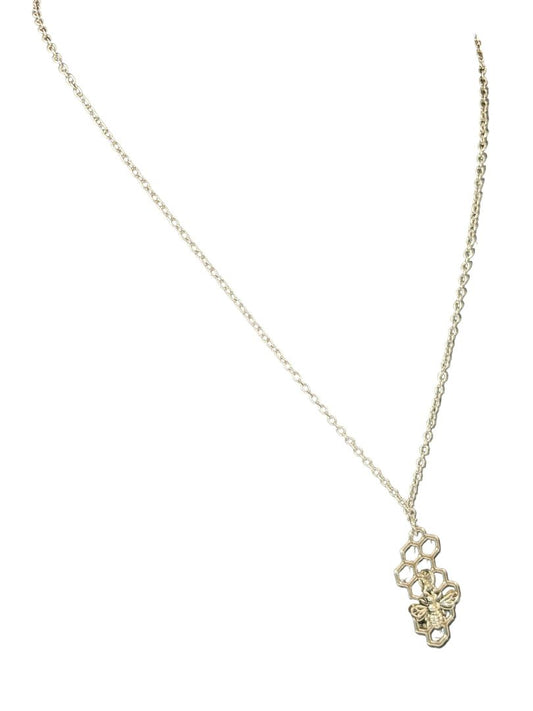 Silvertone Cable Chain Necklace Honeycomb Bee Pendant 18-20"