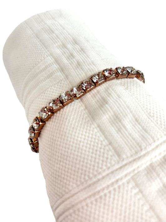 Stretch Bracelet Rhinestone Rose Goldtone Metal Sparkle
