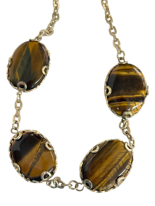 Tiger's Eye Cabochon Link Necklace Banana Republic Gold Tone Tiger Eye 19.5"-23"