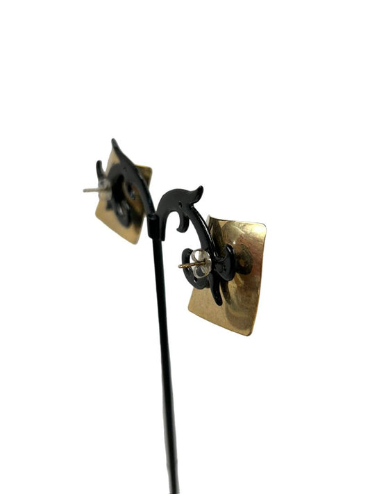 Vintage 1980s Square Goldtone Earrings Post Pierced Waves 7/8"