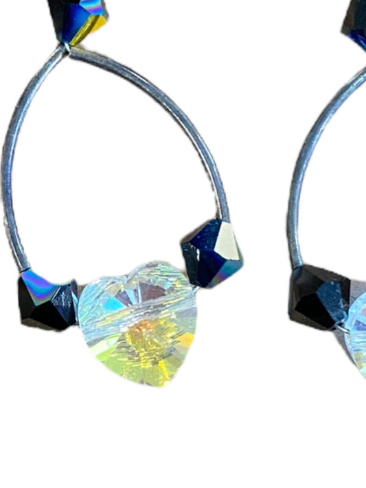 Aurora Borealis Silver Tone Sparkling Dangle Pierced Earrings Evening Wear