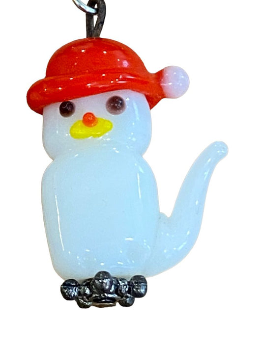 Glass Santa Cats Christmas Dangle Pierced Earrings