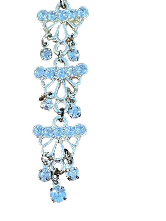 Silver Tone Rhinestone Art Deco Chandelier Dangle Pierced Earrings