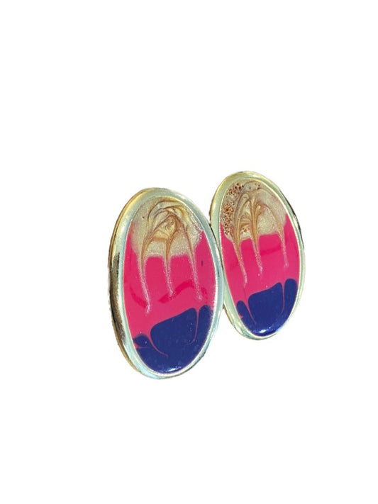 80's Gold Tone Retro Oval Enamel Pink Purple Pierced Post Earrings