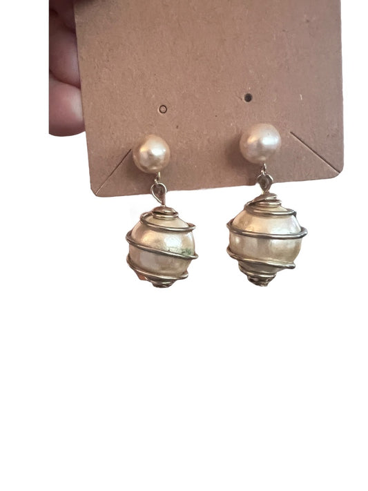 Faux Pearl Dangle Earrings Vintage Metal Coiled 1.5" Drop
