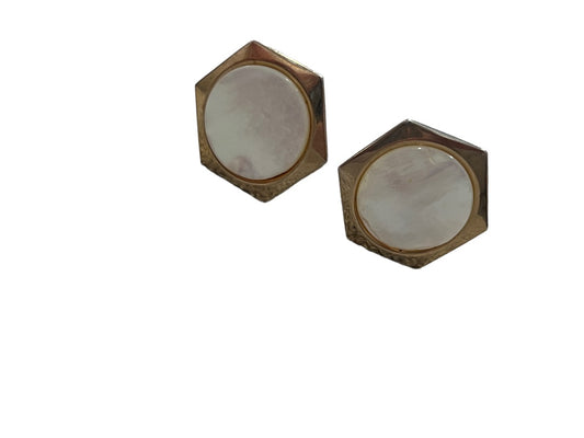 Mother Of Pearl Hexagon Gold Tone Cufflinks Vintage 15/16" across