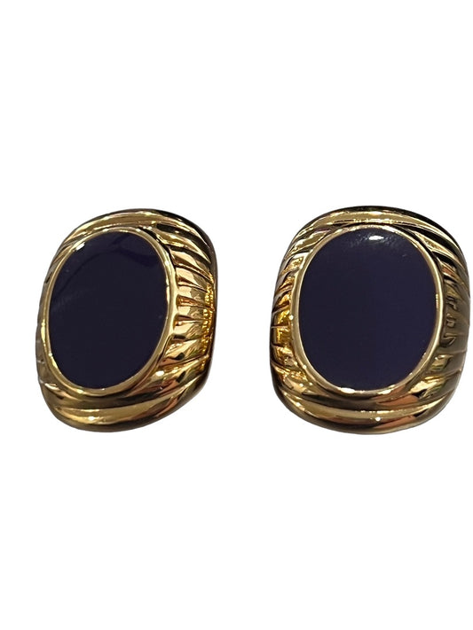 Vintage Signed JS Gold Tone And Navy Enamel Clip-On Earrings