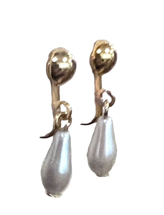 Faux Pearl Gold Tone Dangle Earrings Clip On Tear Drop