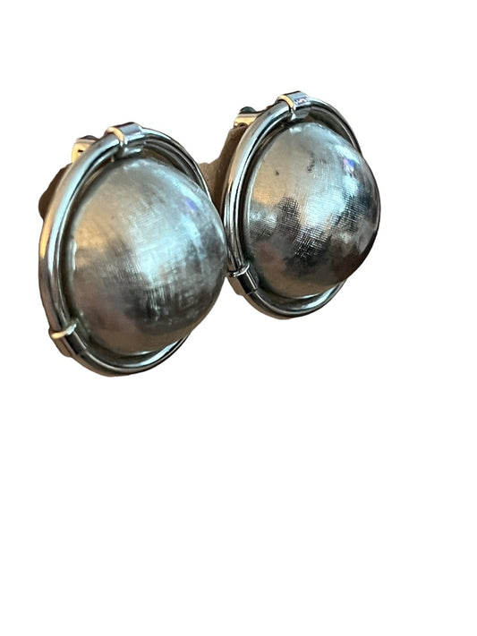 Coro Silver Tone Round Dome Textured Clip On Earrings 1 1/8" Diameter