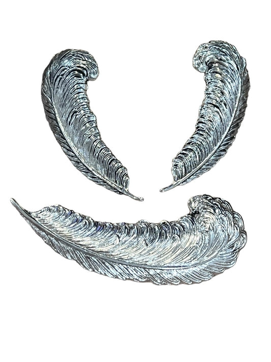 Silver Tone Feather Earrings and Brooch Set Vintage Clip On