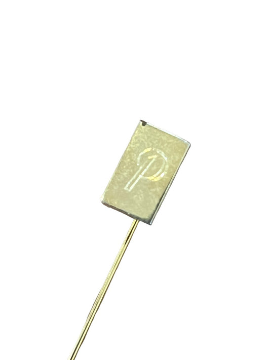 Gold Tone Stick Pin Initial Monogram P Rectangle 2.5" long