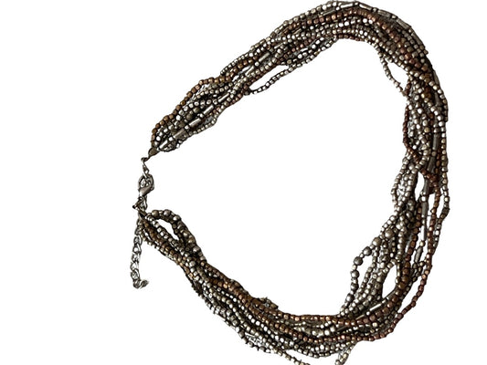 Mixed Metal Seed Bead Twisted Necklace 15" - 17"