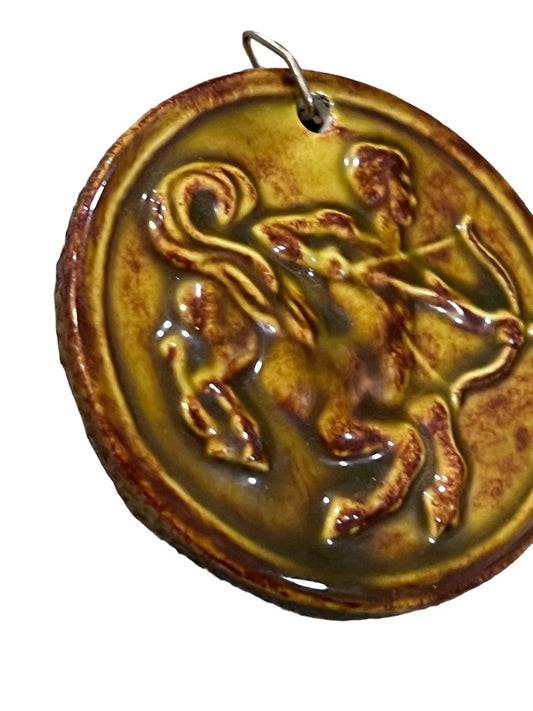 Glazed earthenware ceramic vintage inspired Zodiac Sagittarius Pendant Ornament