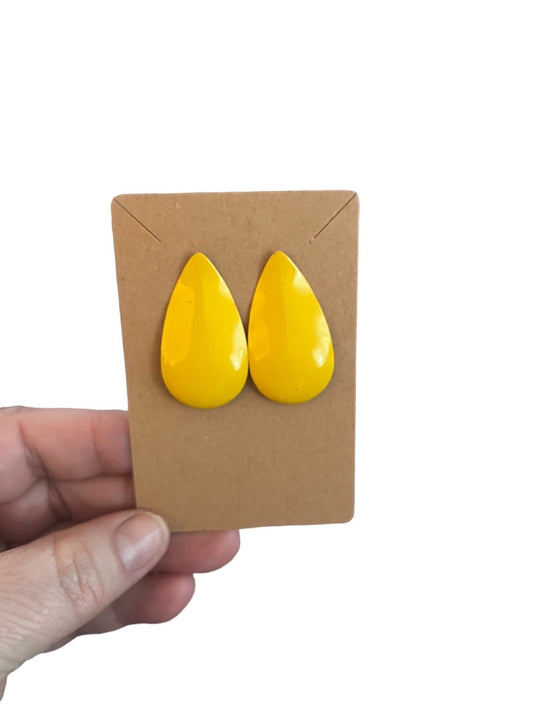 80's Bright Yellow Metal Earrings Retro Tear Drop Enamel Paint