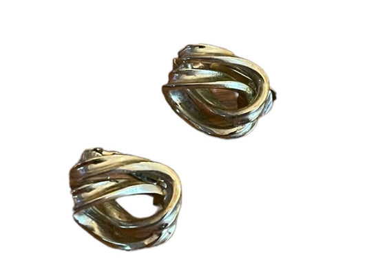 Trifari Signed Interlocking Circles Clip On Goldtone 3/4" Earrings Non-Pierced
