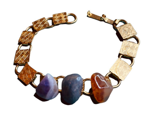 Vintage Three Stone Purple Blue Orange Goldtone Link Bracelet 7"