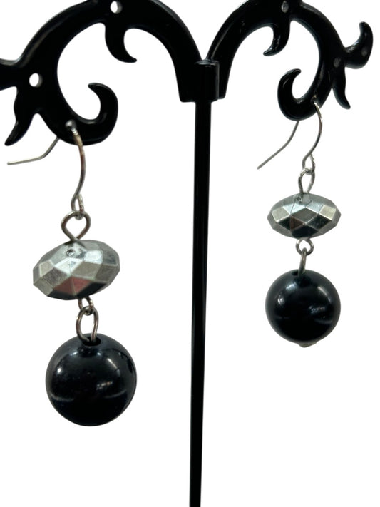 Silvertone Black Fish Hook Earrings 1.6 Inch Drop Pierced